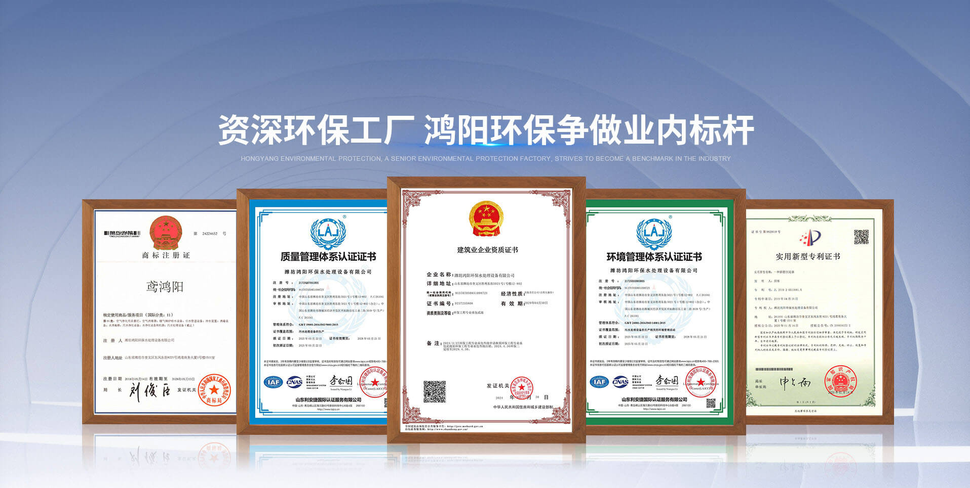 潍坊鸿阳环保水处理设备有限公司是一家集科研、设计施工、生产、销售于一体的专业环保设备制造企业。拥有独立办公楼,占地面积 11400 平方。通过了 ISO 中英文质量、环境等三体系认证,拥有自主商标(鸢鸿阳)及各种专利证书。取得环保工程专业承包二级资质,可承接大中小型环境治理工程。